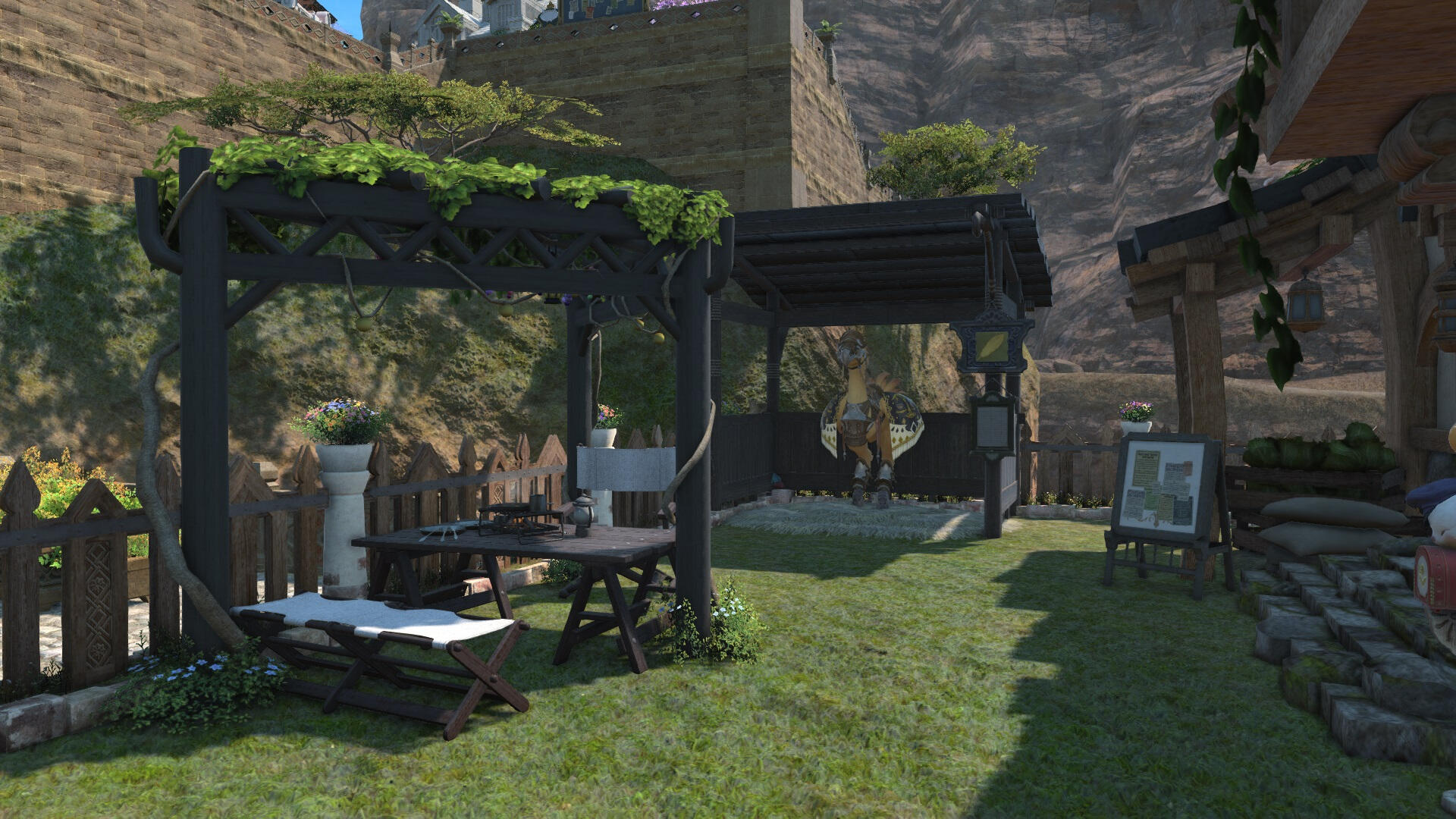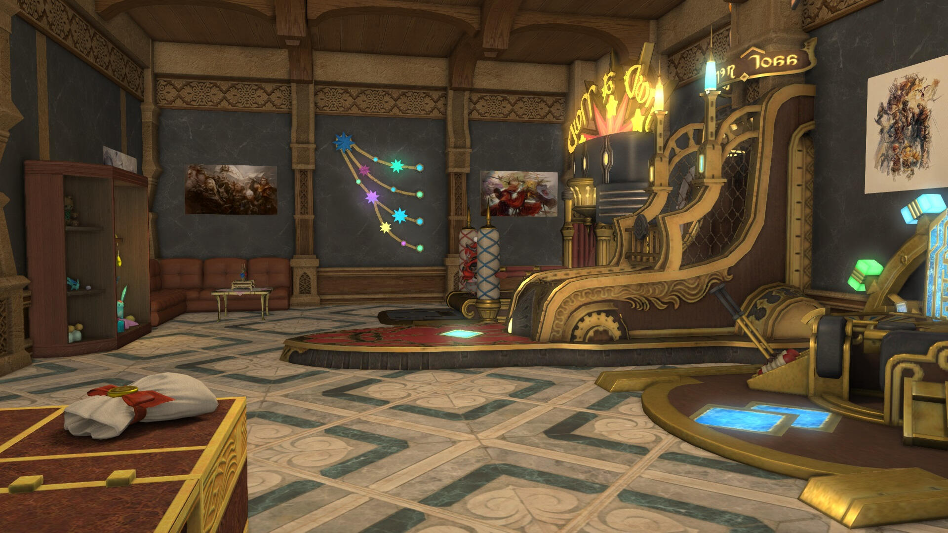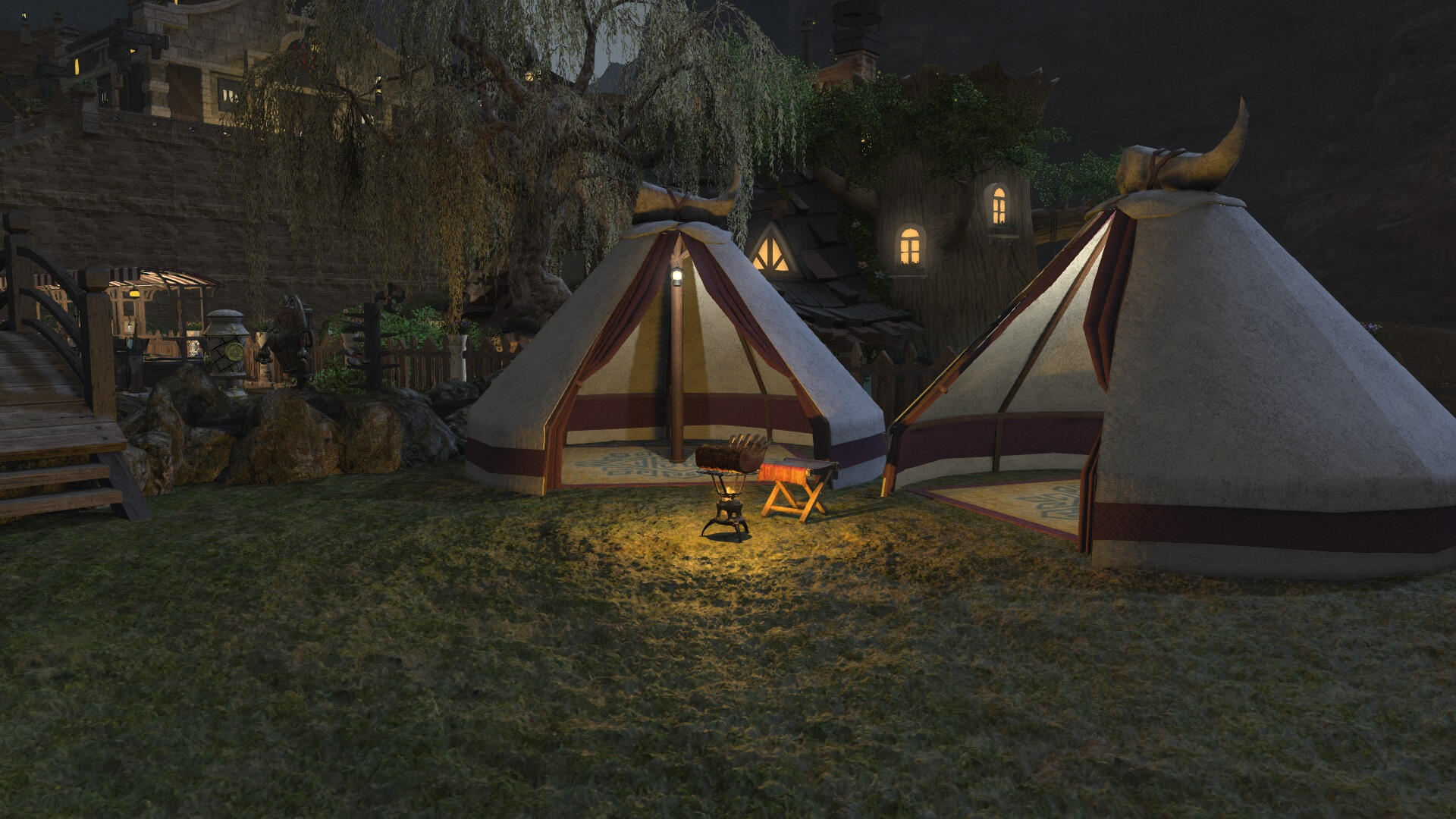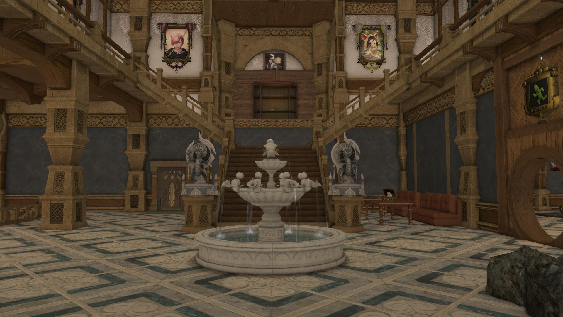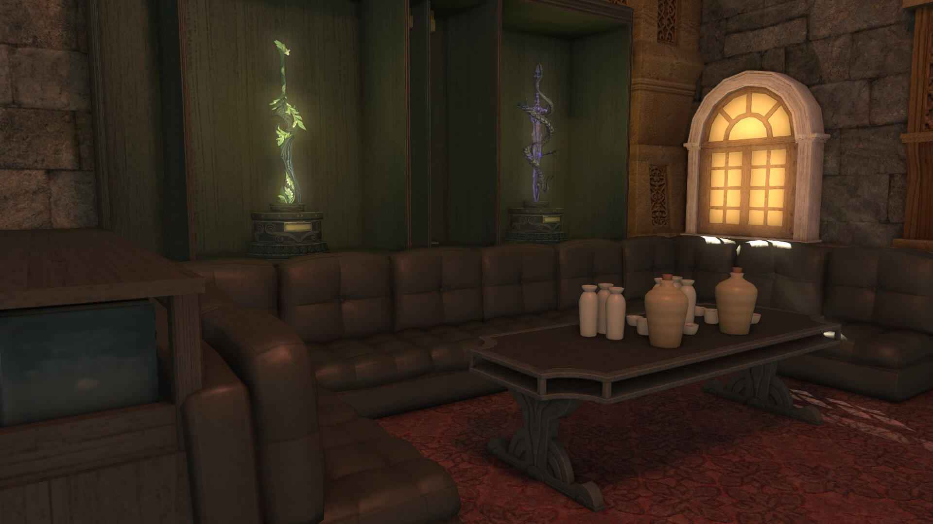 A adventure hall for quests, hunts and personal plotlines. Inn rooms, a restaurant and bar, and even a sparring area are inside.We are located in the Goblet (Ward 4, Plot 60) in Balmung!
