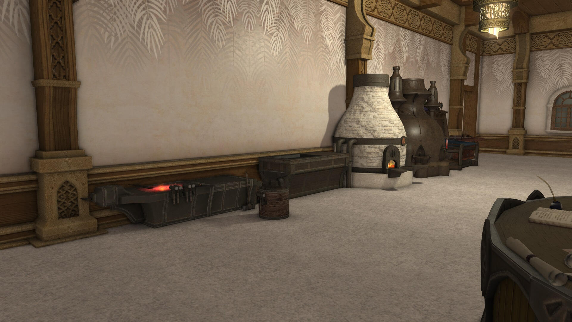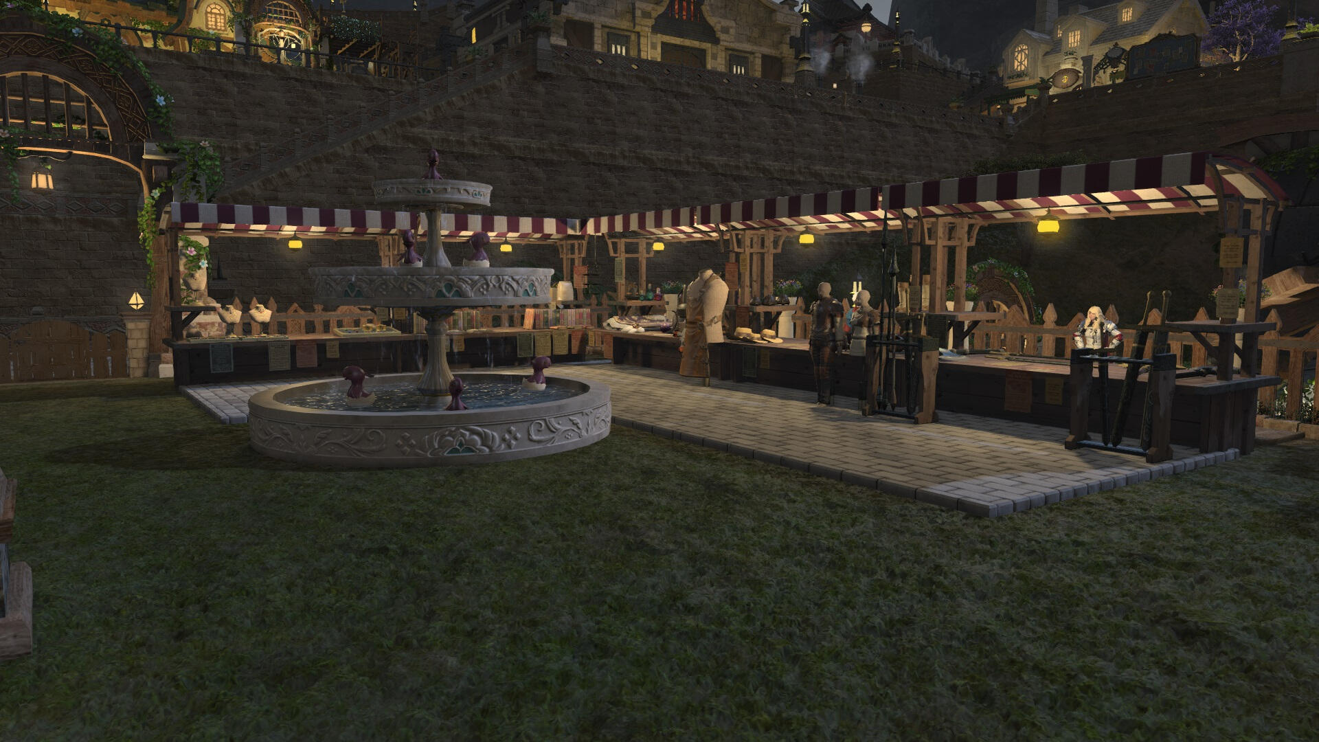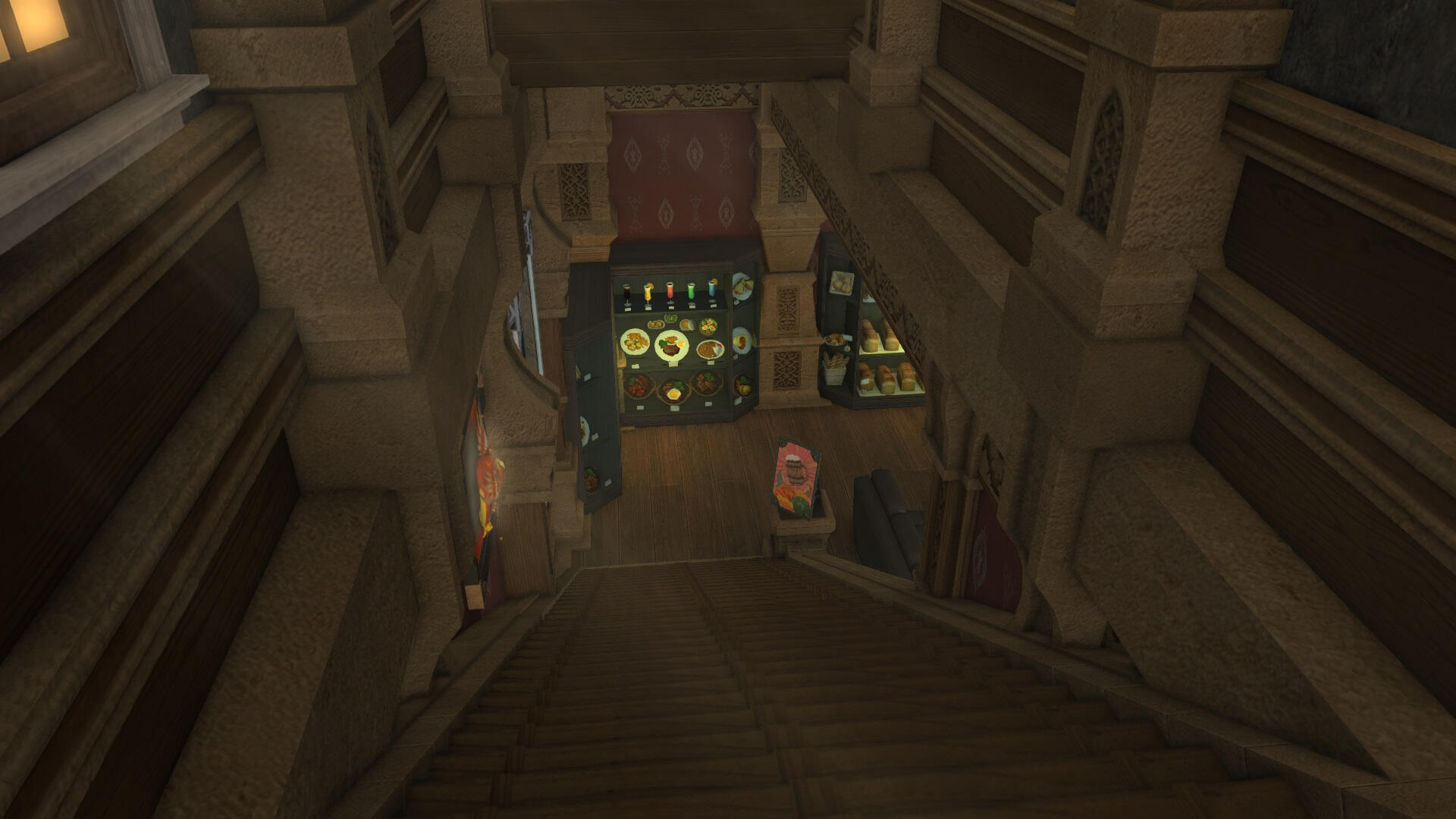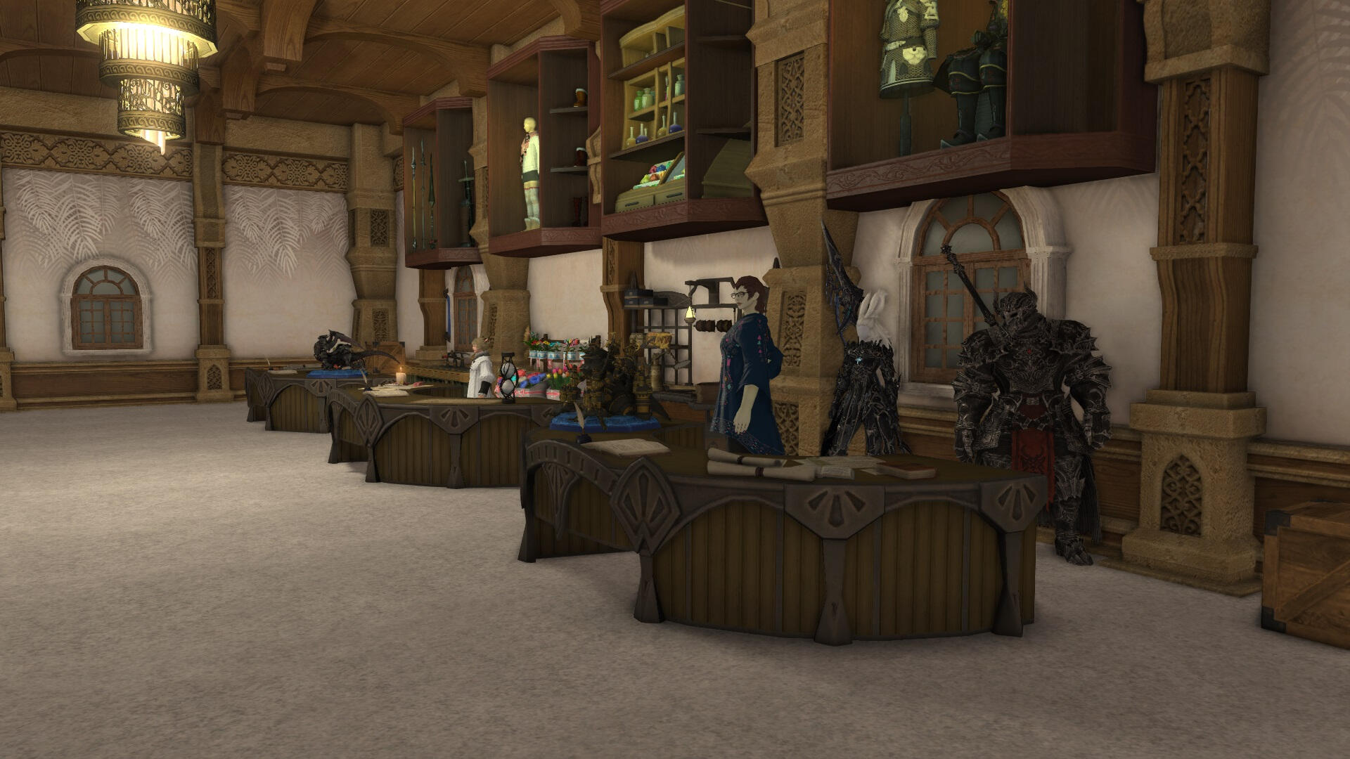 The adventure hall stands as a grand and inviting structure in the corner of the Goblet. This majestic hall is a sanctuary for adventurers from all walks of life, offering them a place to gather, form alliances, and embark on thrilling quests that range from the mundane to the legendary. The hall's architecture is a blend of ancient stone and polished wood, adorned with tapestries that depict epic tales of heroism and camaraderie.Upon entering the hall, adventurers are greeted by a spacious area with seating and a counter. The wall where the counter is located is lined with a notice board, brimming with parchments detailing available quests. These range from local tasks like escorting caravans and investigating mysterious occurrences, to more perilous journeys such as bounties and treasure hunting in distant lands.There is also a library upstairs, and a shop for equipment, general items and weapons. There is also the possibility to craft your own. And downstairs is the sparring area where adventurers can hone their skills. Inn rooms are also available for those that need a place to rest.